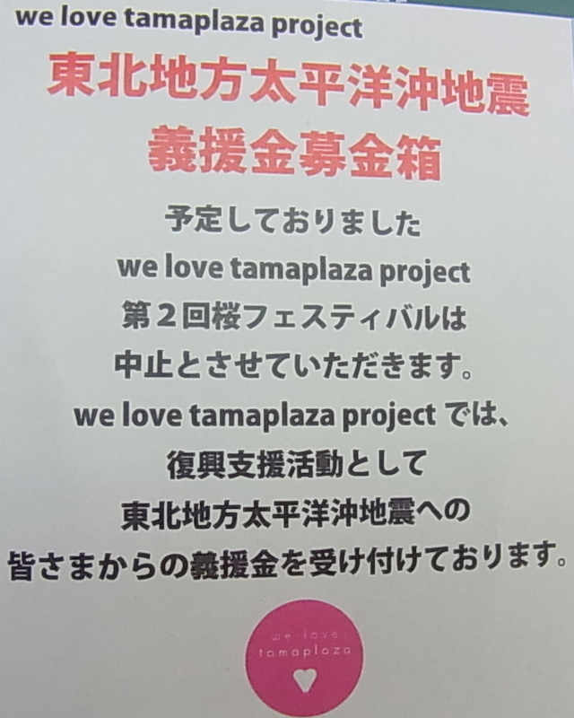 今年の第二回桜フェスティバルは中止になりました。商店街では東北地方太平洋沖地震への義援金を受け付けております。