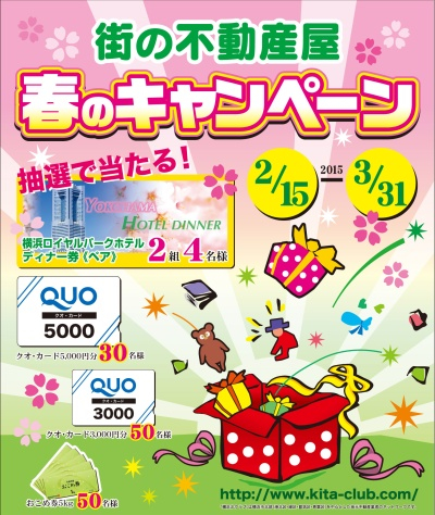 2015年2月15日(日)より2015年3月31日(火)までの期間「街の不動産屋 春のキャンペーン」を実施いたします。